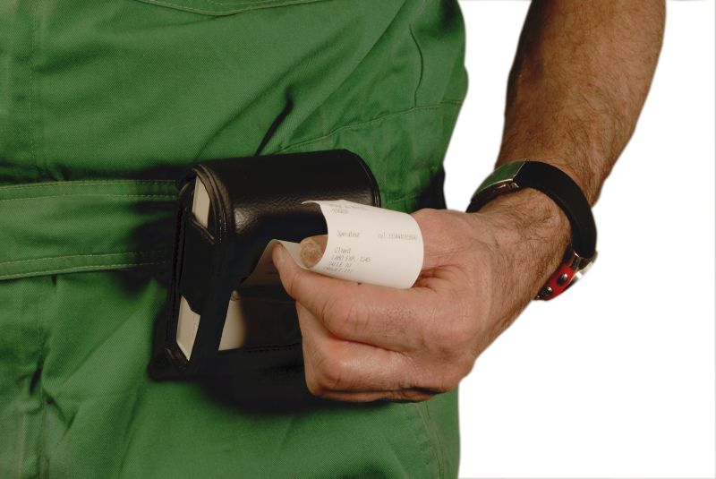 Imprimante portable avec ruban thermique, autonome, transfert des informations saisie avec le lecteur id-one via Bluetooth. Accesoires: Etui ceinture, chargeur de table, chargeur voiture, ruban thermique.
